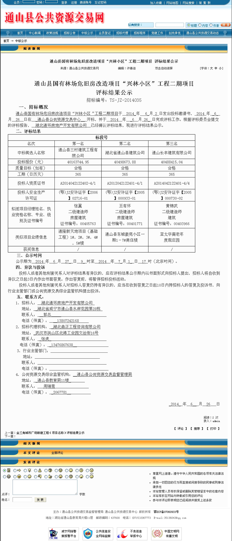 中標(biāo)公示