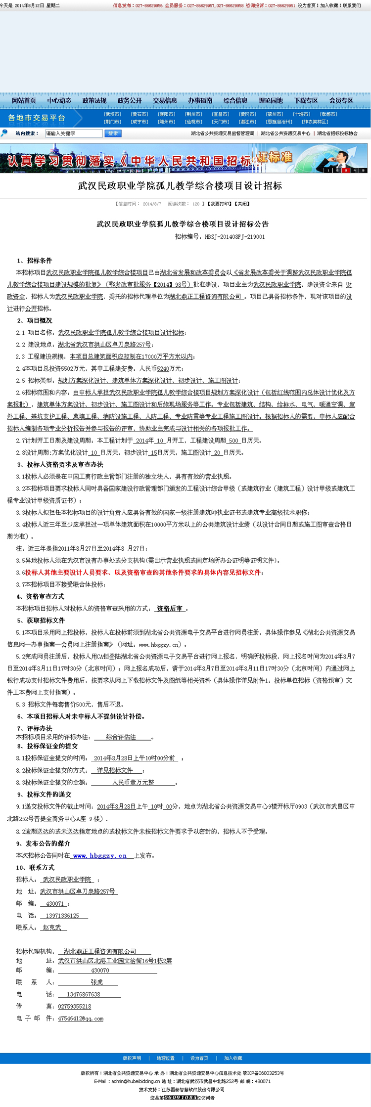 武漢民政職業(yè)學(xué)院孤兒教學(xué)綜合樓項目設(shè)計招標(biāo)