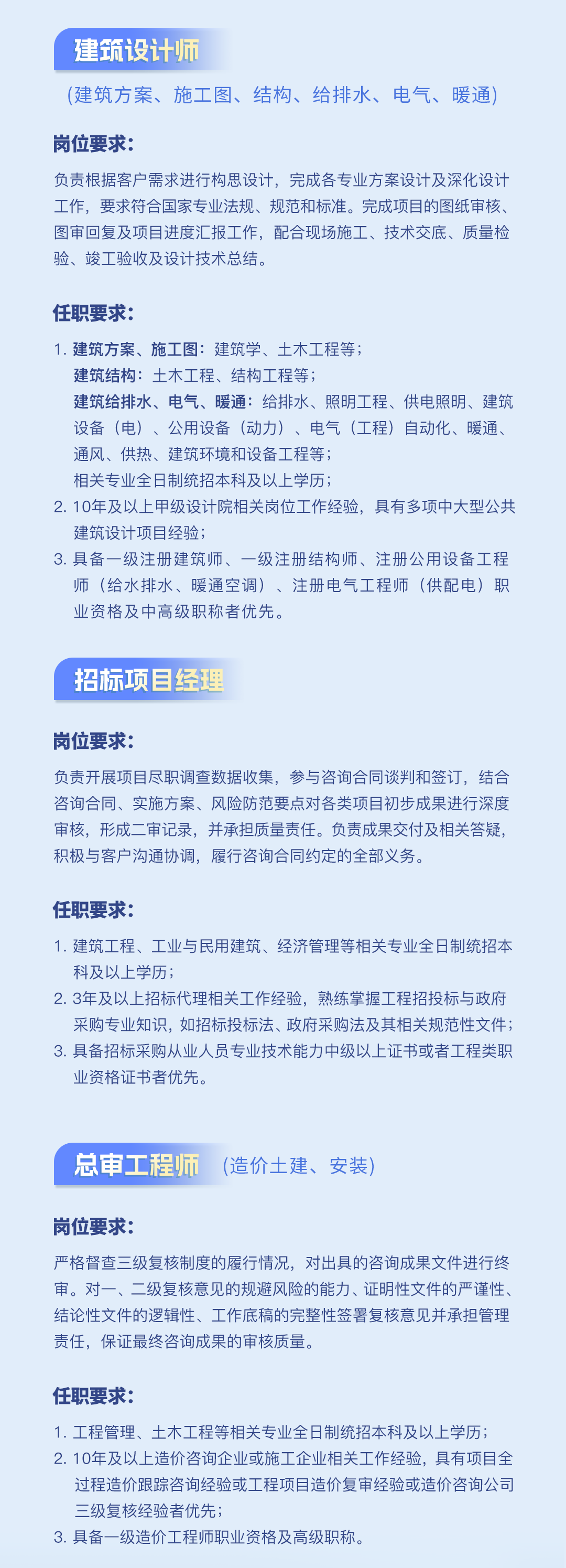 公司下設工程咨詢事業(yè)部、招標代理事業(yè)部、工程造價咨詢事業(yè)部、規(guī)劃設計事業(yè)部等機構...