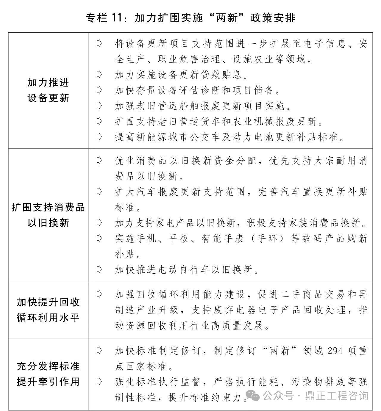安排超長期特別國債5000億元支持大規(guī)模設(shè)備更新和消費品以舊換新,統(tǒng)籌投資、財政、金融等綜合性政策,深入推進設(shè)備更新、消費品以舊換新、回收循環(huán)利用、標準提升四大行動。進一步加大重點領(lǐng)域設(shè)備更新項目支持力度,加力實施設(shè)備更新貸款貼息,加快存量設(shè)備評估診斷和項目儲備。進一步支持消費品以舊換新,擴大汽車報廢更新支持范圍,完善汽車置換更新補貼標準,實施手機、平板等數(shù)碼產(chǎn)品購新補貼,積極支持家裝消費品換新,簡化補貼申領(lǐng)和支付流程,完善資金監(jiān)管機制,嚴厲打擊價格欺詐和違規(guī)騙補套補行為。