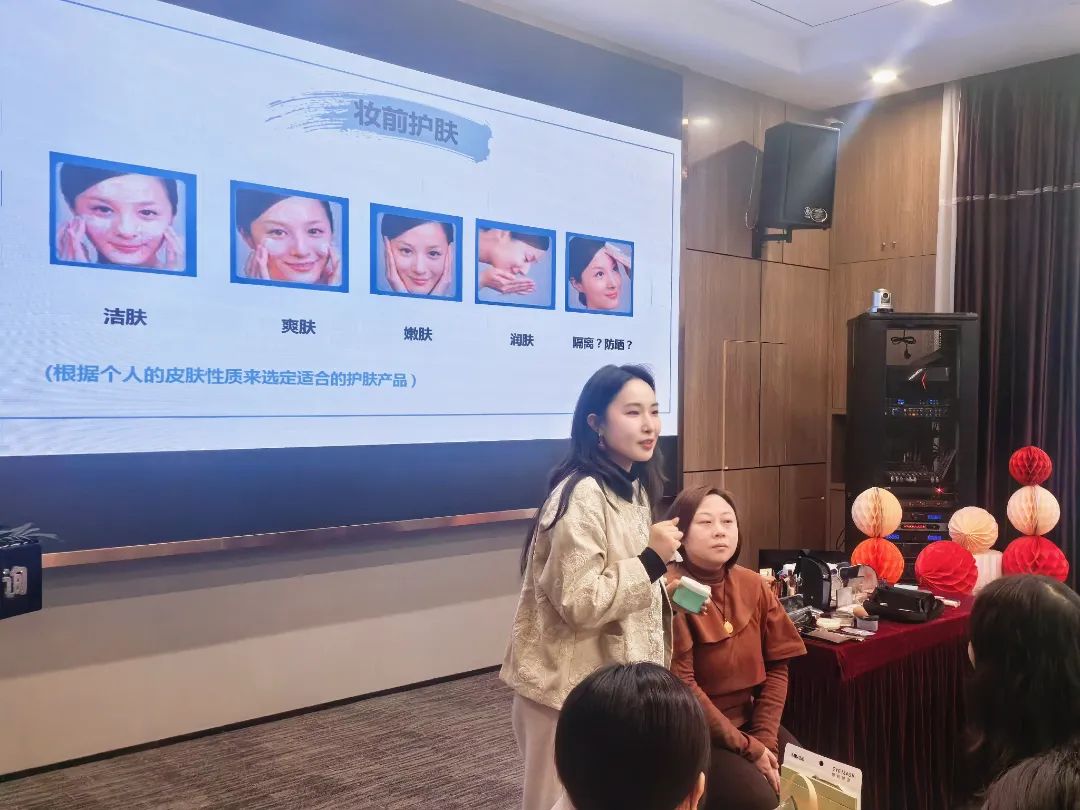 課堂上,專(zhuān)業(yè)美妝老師以細(xì)膩的筆觸和專(zhuān)業(yè)的視角,系統(tǒng)地解析了職場(chǎng)與生活雙場(chǎng)景下的妝容公式。她強(qiáng)調(diào),底妝是整體妝容的基石,不同膚色適合的底妝色號(hào)各不相同,精準(zhǔn)選擇能讓妝容更加自然和諧。從職場(chǎng)著裝到妝容設(shè)計(jì),從理論剖析到實(shí)操技巧,從眉形勾勒到腮紅暈染,通過(guò)現(xiàn)場(chǎng)演示,將每一個(gè)步驟都講解得細(xì)致入微。她手把手地指導(dǎo),幫助在場(chǎng)的每一位女神擺脫“手殘”的困擾,傳授實(shí)用的化妝技巧,耐心解答每一個(gè)疑問(wèn)。