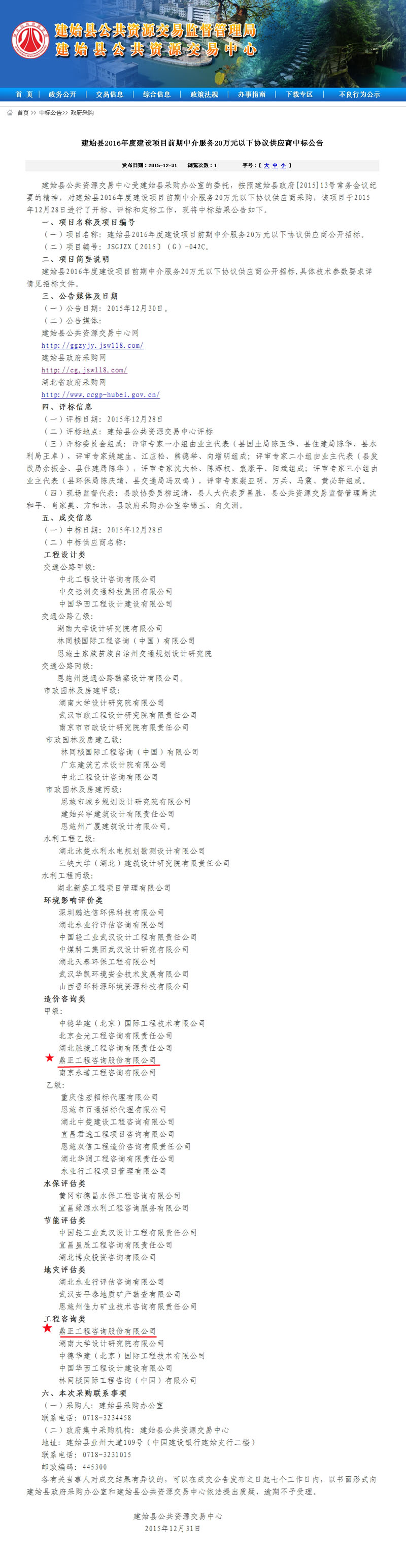 【經(jīng)營成果】我司入選建始縣2016年度建設(shè)項目前期中介服務20萬元以下協(xié)議供應商