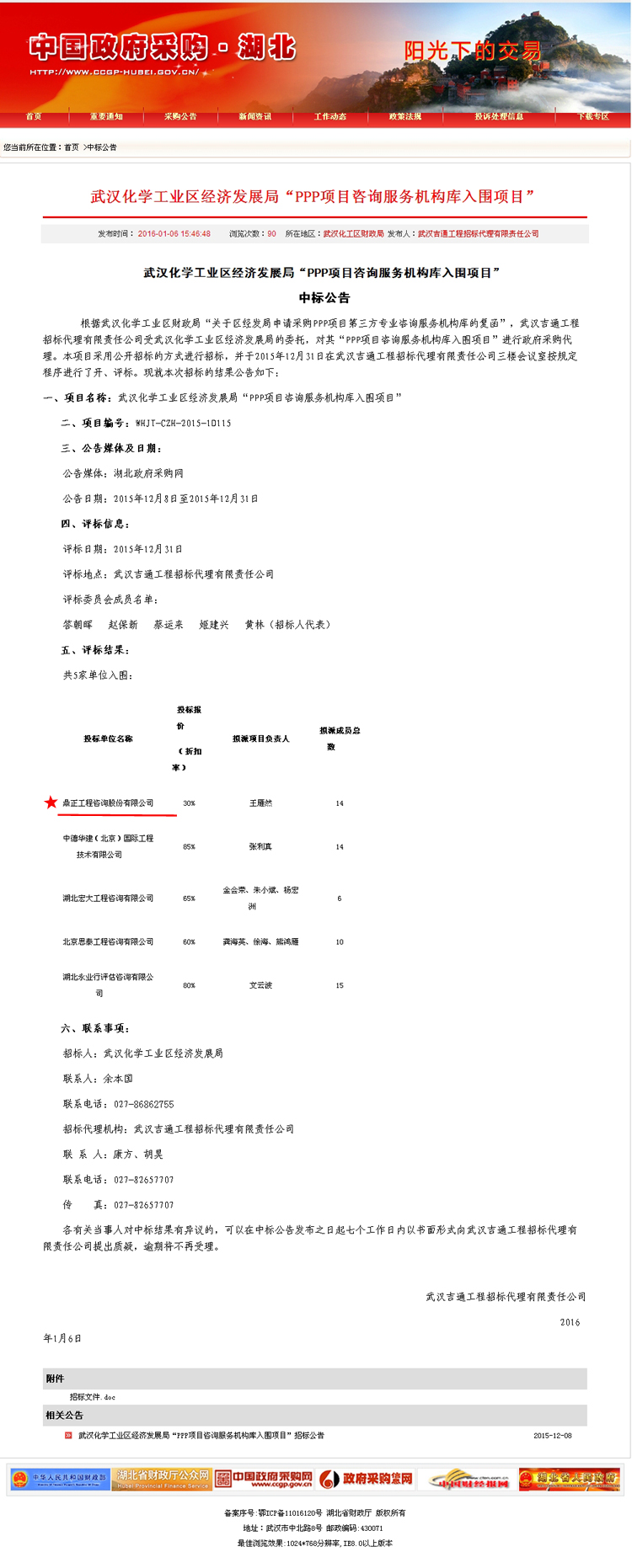 【經(jīng)營成果】我司入圍武漢化學(xué)工業(yè)區(qū)經(jīng)濟(jì)發(fā)展局“PPP項(xiàng)目咨詢服務(wù)機(jī)構(gòu)庫”