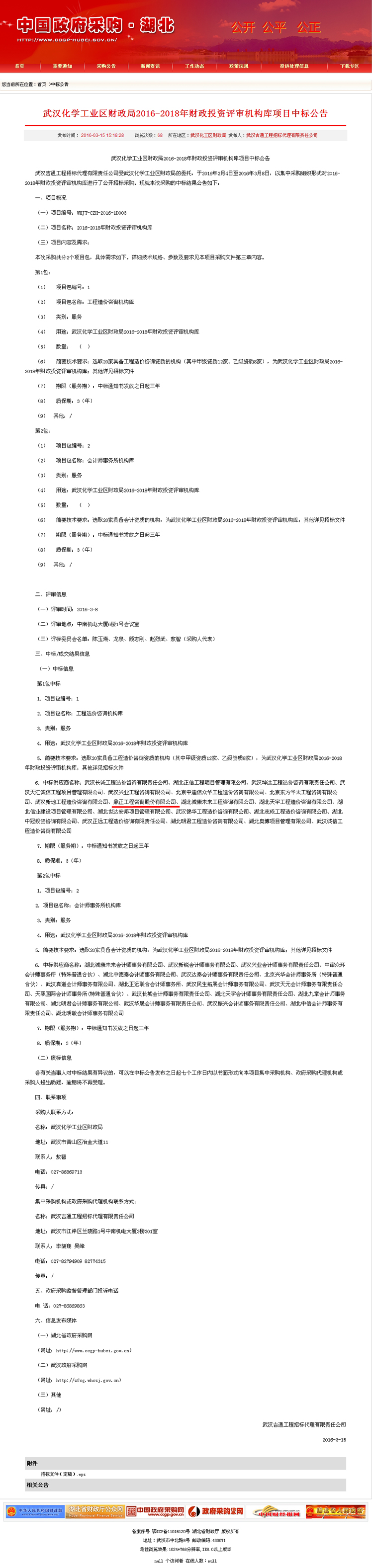 【經(jīng)營(yíng)成果】我司入圍武漢化學(xué)工業(yè)區(qū)財(cái)政局2016-2018年財(cái)政投資評(píng)審機(jī)構(gòu)庫