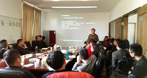 出席本次會議的還有武漢市造價協(xié)會汪國剛會長、湖北省造價協(xié)會湯志芳主任、武漢市造價協(xié)會張智學(xué)副會長、中國建設(shè)銀行湖北省分行造價咨詢中心副總經(jīng)理趙丹暉女士、中國國際工程造價咨詢有限公司湖北分公司副總經(jīng)理陳文軍先生等20多家設(shè)計、業(yè)主、咨詢單位領(lǐng)導(dǎo)和BIM應(yīng)用專業(yè)人員約30余人到場,黃亞斌先生從國內(nèi)外BIM應(yīng)用現(xiàn)狀切入主題,就BIM應(yīng)用價值點(diǎn)、應(yīng)用關(guān)鍵點(diǎn)問題展開演講,提出BIM應(yīng)用的關(guān)鍵點(diǎn)是必須建立一套標(biāo)準(zhǔn)化的體系,而BIM人才的培養(yǎng)和BIM團(tuán)隊的建設(shè)是重中之重,并提出了制定BIM應(yīng)用標(biāo)準(zhǔn)和BIM人才培養(yǎng)合作的解決方案。