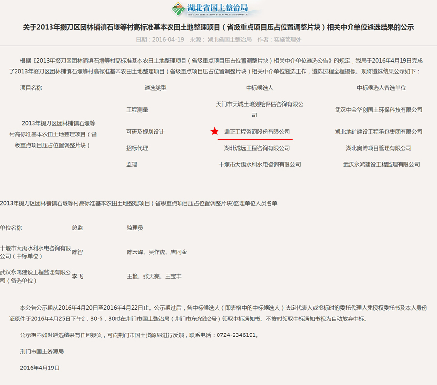 【經(jīng)營成果】我司入選2013年掇刀區(qū)團林鋪鎮(zhèn)石堰等村高標(biāo)準(zhǔn)基本農(nóng)田土地整理項目(省級重點項目壓占位置調(diào)整片塊)相關(guān)中介單位