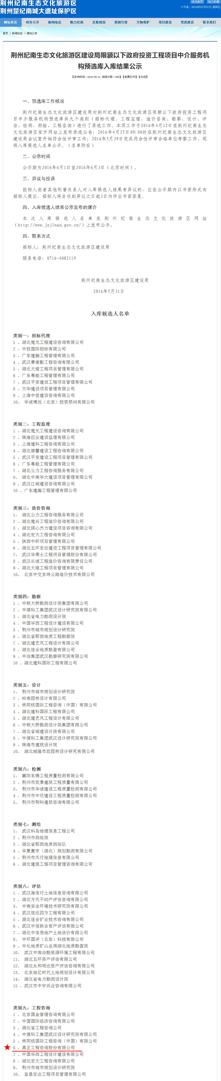 【經(jīng)營成果】我司入圍荊州紀(jì)南生態(tài)文化旅游區(qū)建設(shè)局限額以下政府投資工程項(xiàng)目中介服務(wù)機(jī)構(gòu)預(yù)選庫