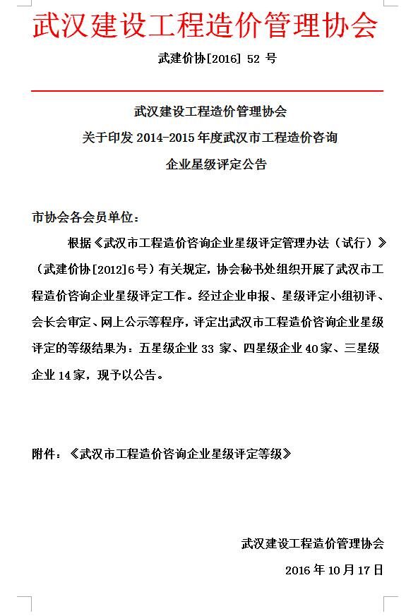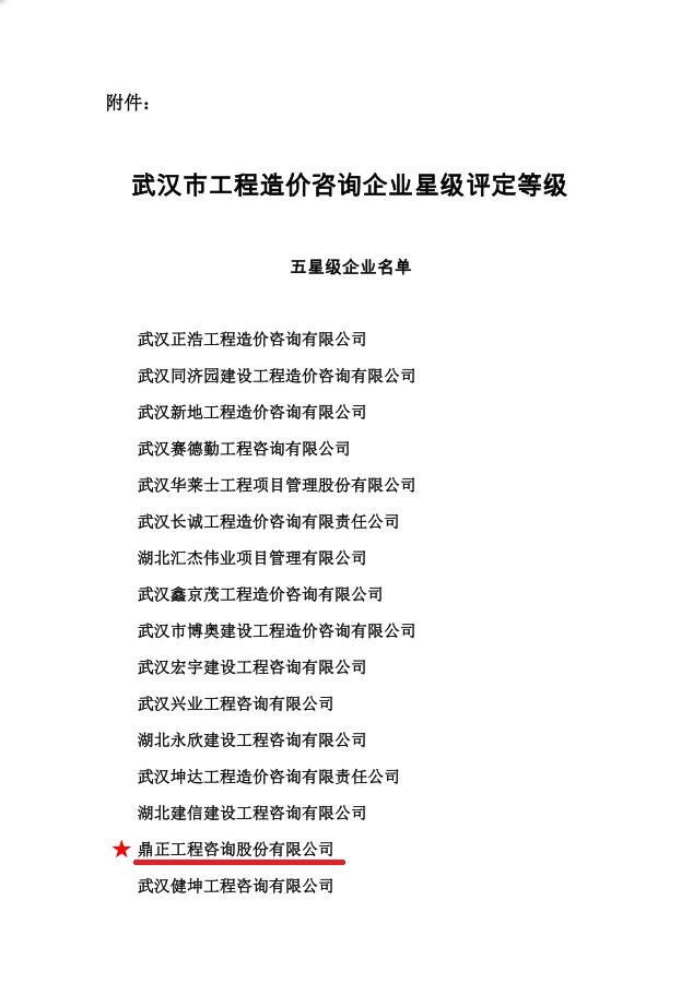 我司獲武漢市工程造價咨詢企業(yè)星級評定五星級企業(yè)稱號