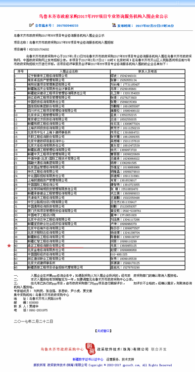 【經(jīng)營成果】我司成功入圍烏魯木齊市政府采購2017年P(guān)PP項(xiàng)目專業(yè)咨詢服務(wù)機(jī)構(gòu)庫