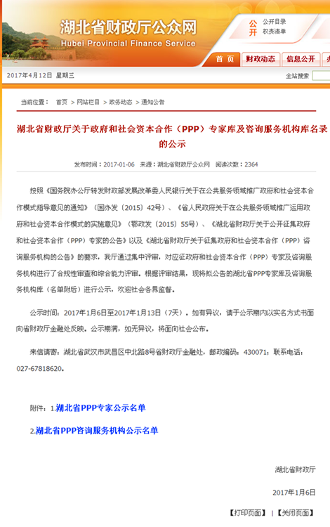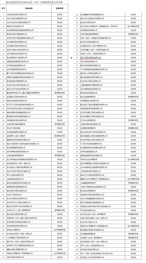 我司入選湖北省財(cái)政廳PPP咨詢服務(wù)機(jī)構(gòu)庫(kù),同時(shí)3位同事入選湖北PPP專家?guī)?/span>