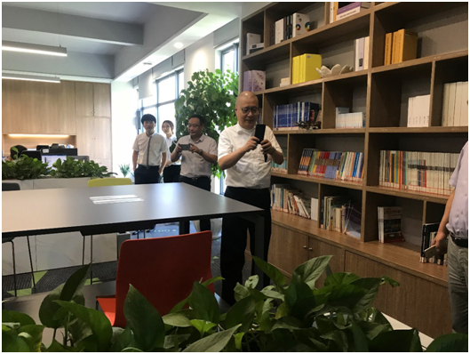 尹教授及各位來賓在我司董事長王雁然先生的陪同下,參觀了我們的辦公樓。當尹教授來到綠意盎然、滿室書香的二樓閱覽室時,還拿出手機連連拍照,每一層看完后尹教授贊不絕口,和陪同人員說:“鼎正的環(huán)境無論是硬件設備設施,還是裝修風格都領先于同行業(yè) ”。