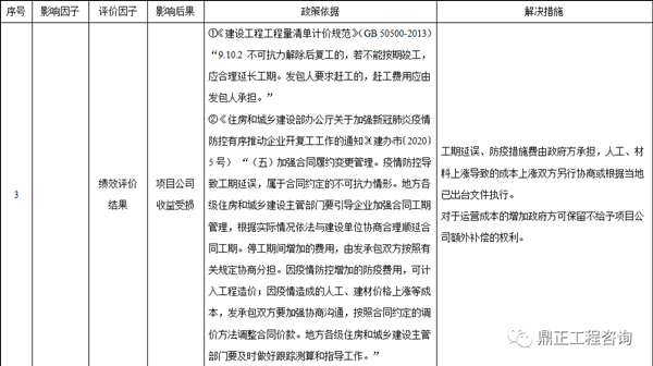 綜上所述,疫情對PPP項目的影響為三個方面,一是政府補貼支付延期;二是績效評價評分降低;三是項目公司收益受損。