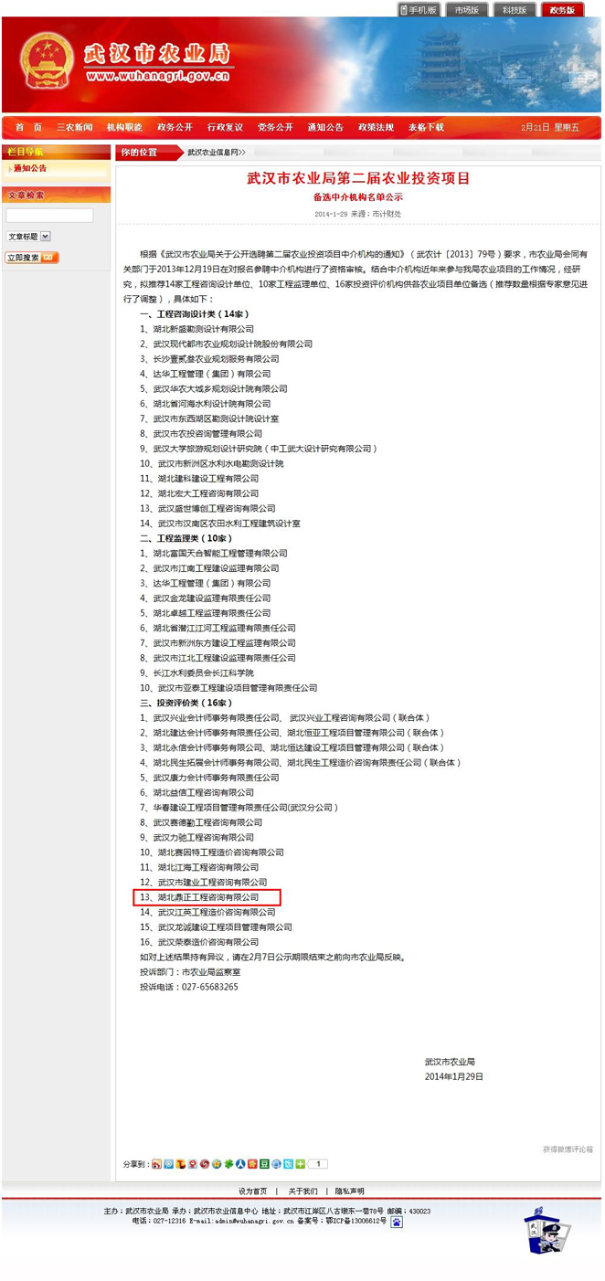 我公司入選武漢市農(nóng)業(yè)局第二屆農(nóng)業(yè)投資項(xiàng)目中介機(jī)構(gòu)庫