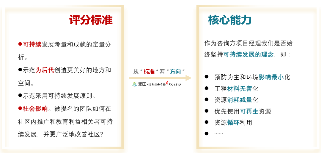 通過(guò)此次評(píng)獎(jiǎng)申報(bào)過(guò)程中的思考與體會(huì),我們想從RICS中國(guó)獎(jiǎng)評(píng)分標(biāo)準(zhǔn)談?wù)勴?xiàng)目經(jīng)理的努力方向。無(wú)論是投資決策咨詢、規(guī)劃設(shè)計(jì),還是政府采購(gòu)與招標(biāo)代理、工程造價(jià)咨詢、工程監(jiān)理及項(xiàng)目管理咨詢的項(xiàng)目經(jīng)理,都需要明確?優(yōu)秀的項(xiàng)目管理是什么樣的?要實(shí)現(xiàn)這些成果需要培養(yǎng)并精進(jìn)哪些核心能力?