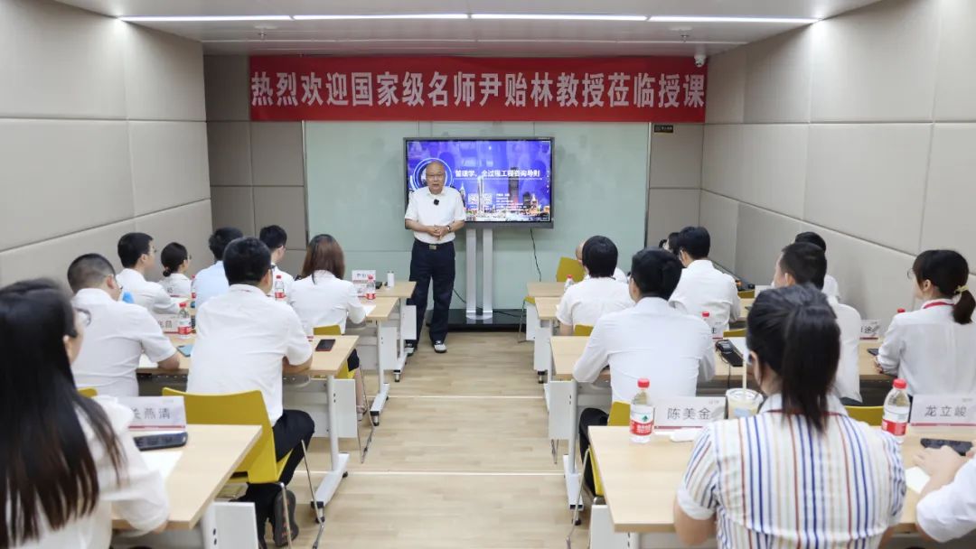 鐘泉董事長(zhǎng)為尹教授到來授課表示熱烈的歡迎與崇高的敬意。鐘泉董事長(zhǎng)從1997年開始就跟隨尹教授學(xué)習(xí),在作為造價(jià)工程師以至成為一家工程咨詢企業(yè)領(lǐng)導(dǎo)者的職業(yè)道路上,一直都深受尹教授思想影響。他是尹教授多年來在全國(guó)各地講課的忠實(shí)聽眾,深為尹教授的高深思想與授課魅力折服,他表示,能夠邀請(qǐng)尹教授為工程咨詢行業(yè)的“未來之星”授課,是一件代表著行業(yè)發(fā)展“薪火相傳”的大事情。