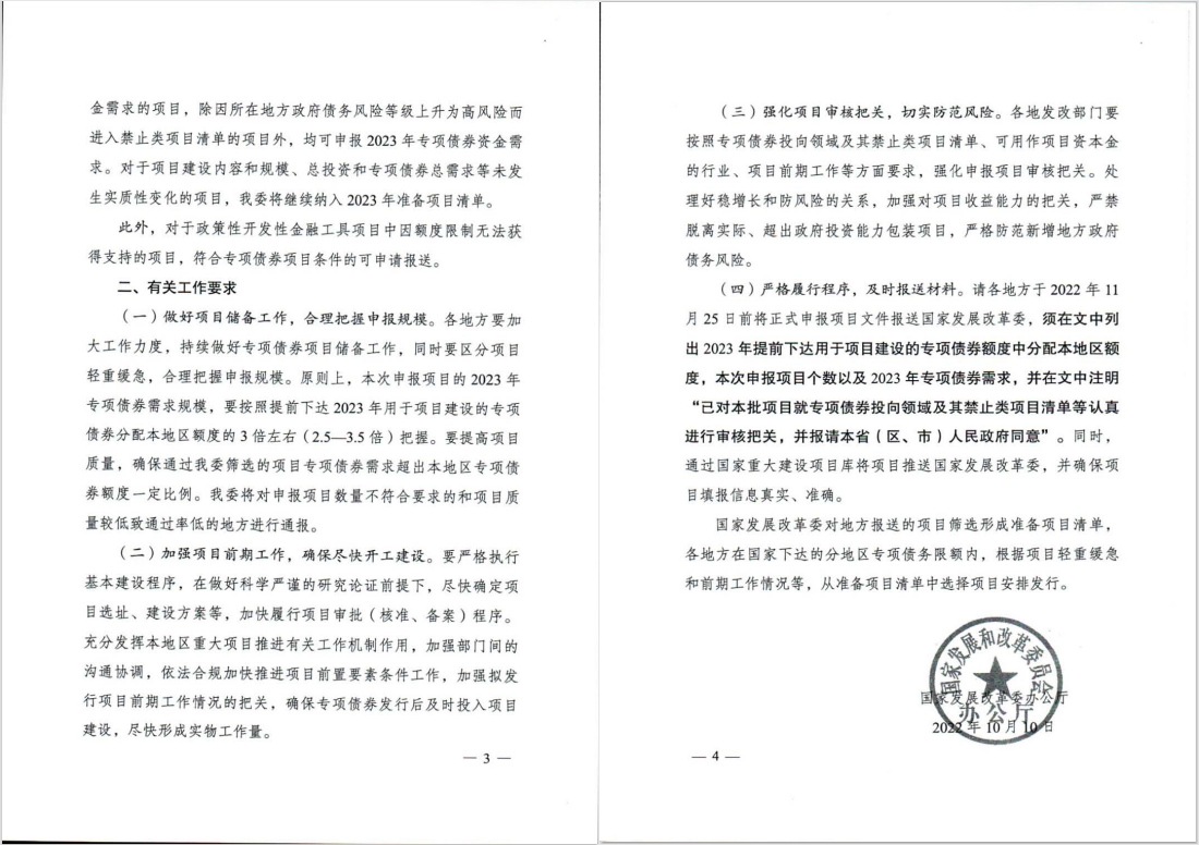 2.要全力做好項目前期準備工作,確保項目成熟可行。各地要認真開展事前績效評估,優(yōu)先支持在建項目,新開工項目必須是已經(jīng)取得立項批復、年內(nèi)具備開工條件且能夠形成實物工作量。從債券資金支出使用進度看,可行性研究是否深入、征地拆遷是否完成、水電接入和市政配套是否齊備、建設(shè)方案是否科學,是制約債券資金撥付快慢的重要因素,主管部門和項目單位應提早做好前期準備工作,加快項目申報審批,努力做到項目儲備一批、發(fā)行使用一批、開工建設(shè)一批,避免“錢等項目”。