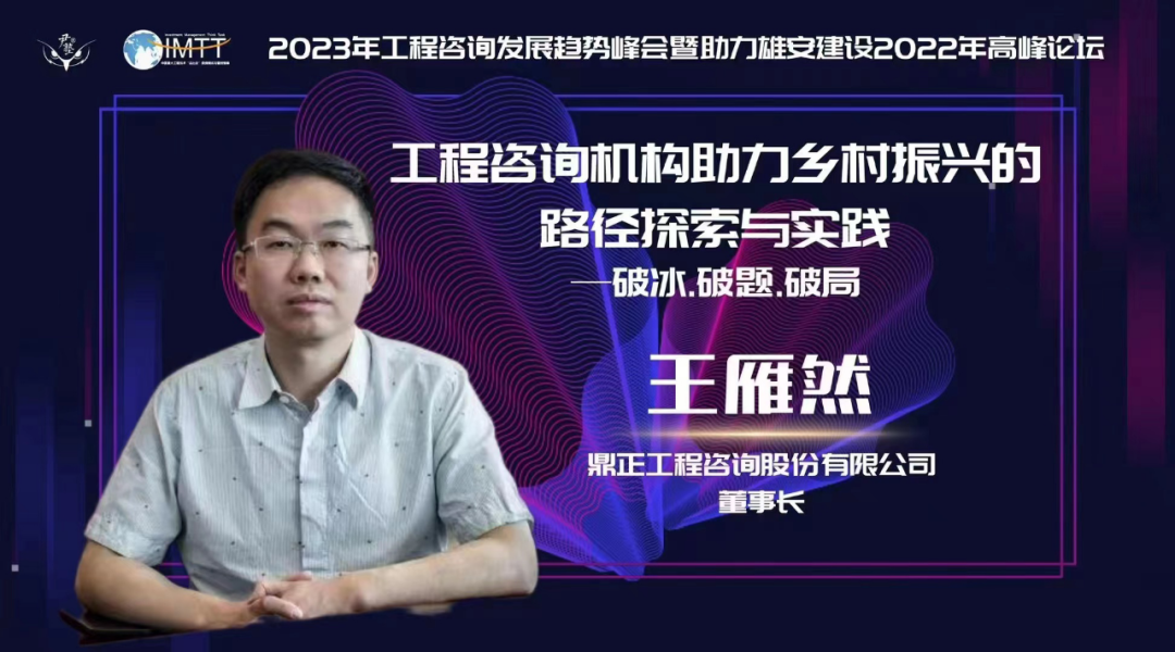 王雁然董事長受邀參與論壇并發(fā)表主題演講,他以《工程咨詢機(jī)構(gòu)助力鄉(xiāng)村振興的路徑探索與實踐》為題,從破冰、破局、破題三個層次逐步切入,先后論述了新時代背景下推進(jìn)鄉(xiāng)村振興戰(zhàn)略面臨的機(jī)遇與挑戰(zhàn)。