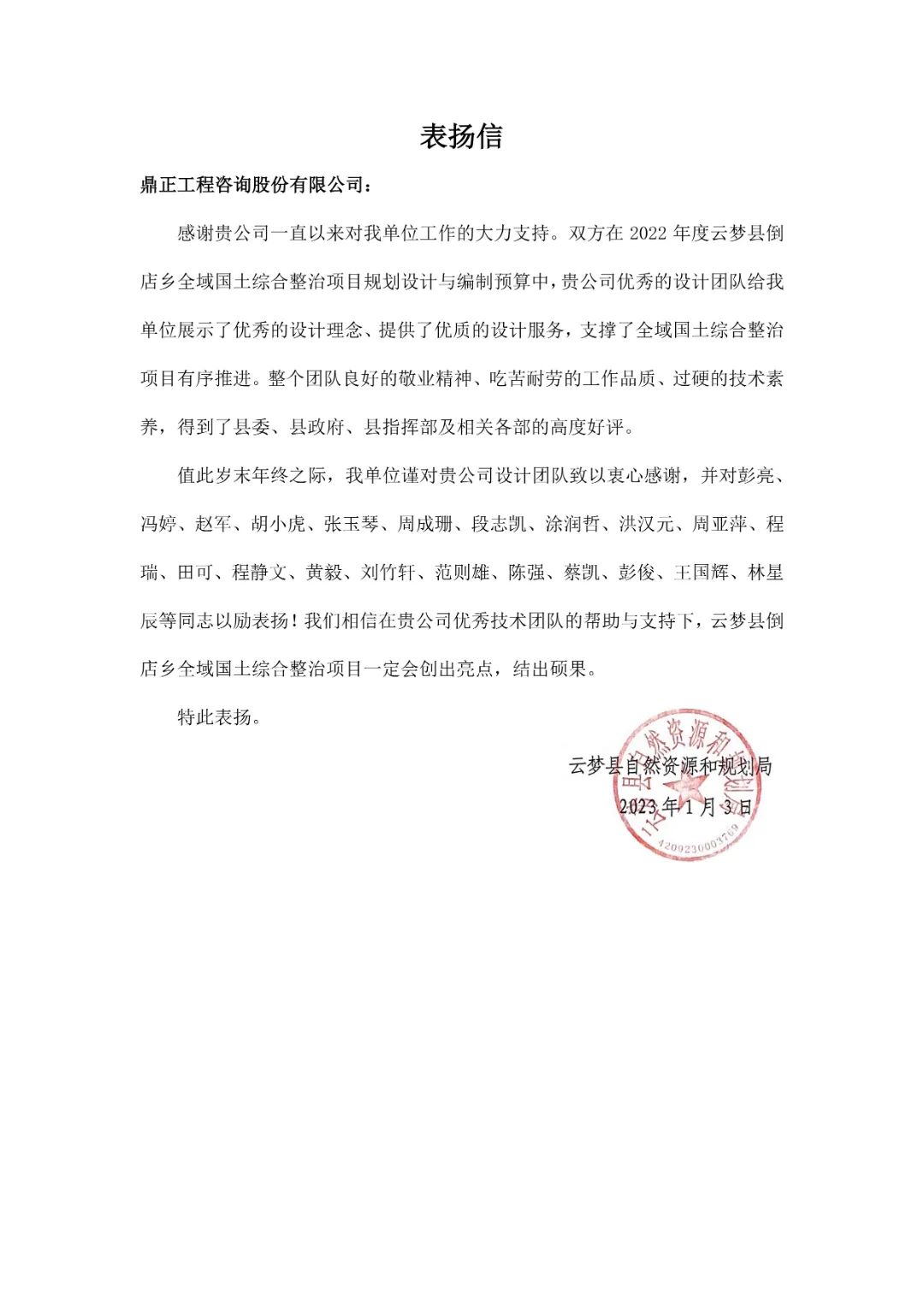 在2022年度云夢縣倒店鄉(xiāng)全域國土綜合整治項目規(guī)劃設(shè)計與編制預(yù)算過程中,項目團(tuán)隊向業(yè)主展示了優(yōu)秀的設(shè)計理念,提供了優(yōu)質(zhì)的設(shè)計服務(wù),有條不紊地推進(jìn)項目進(jìn)行,高質(zhì)量地完成了項目相關(guān)報規(guī)報批節(jié)點,獲得縣委、縣政府、縣指揮部及相關(guān)各部高度好評。本項目規(guī)格高、要求嚴(yán)格,在接到任務(wù)后,立即成立了項目組,多次深入現(xiàn)場調(diào)研,全力推動項目設(shè)計咨詢工作的開展,從項目建設(shè)必要性、建設(shè)規(guī)模、策劃及建設(shè)方案、工程實施計劃、投資估算及資金籌集、綜合效益等方面進(jìn)行了詳盡地分析研究,為項目前期工作的開展發(fā)揮了咨詢智囊作用。在業(yè)主的大力支持下,項目組從立項到實施,克服了諸多困難,展現(xiàn)了優(yōu)秀的設(shè)計咨詢能力和資源整合能力,其敬業(yè)態(tài)度和專業(yè)素養(yǎng)給業(yè)主留下深刻印象,并獲得業(yè)主單位給予一致好評。