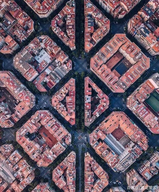 他甚至還規(guī)劃幾個(gè)街區(qū)構(gòu)成一個(gè)單元,來(lái)共享一所學(xué)校、醫(yī)院、市場(chǎng)等公共設(shè)施,塞爾達(dá)近200年前的超前設(shè)計(jì),為這座城市賦予了血肉,也奠定了巴塞羅那城建的基礎(chǔ)。城市的樓房排列整齊,高度一致。道路像棋盤(pán)一樣,宅樓高不超過(guò)六層樓。