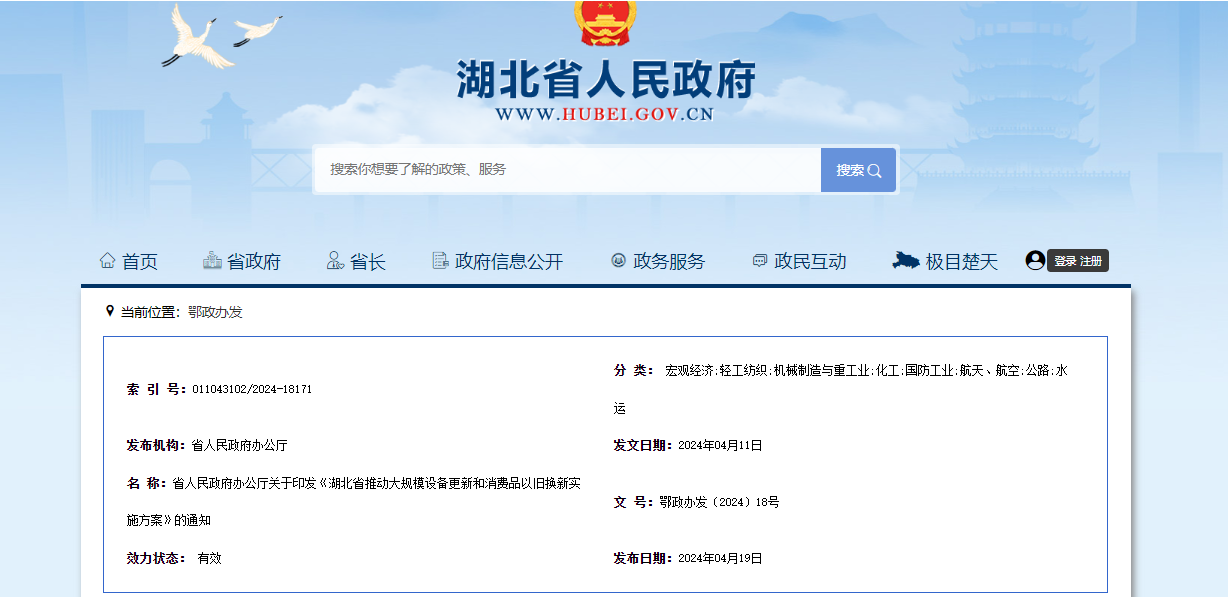 《湖北省推動(dòng)大規(guī)模設(shè)備更新和消費(fèi)品