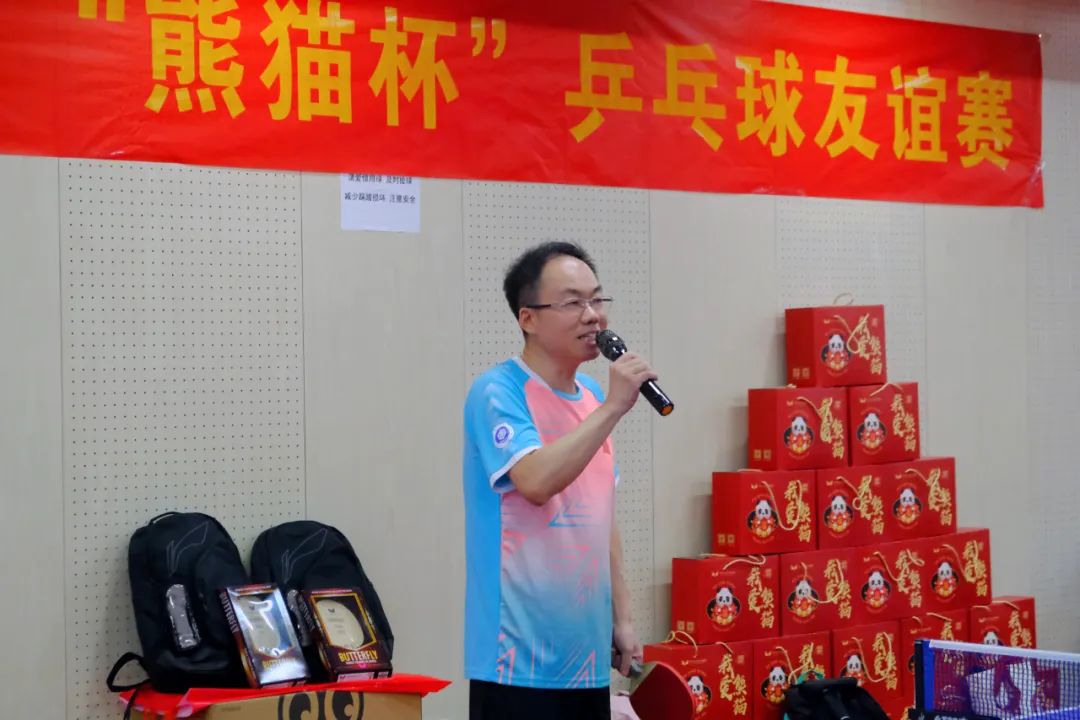 ▲武漢大學(xué)土木建筑工程學(xué)院書記 楊旭下午2時(shí),鼎正董事長王雁然宣布校企乒乓球聯(lián)誼賽正式開始。