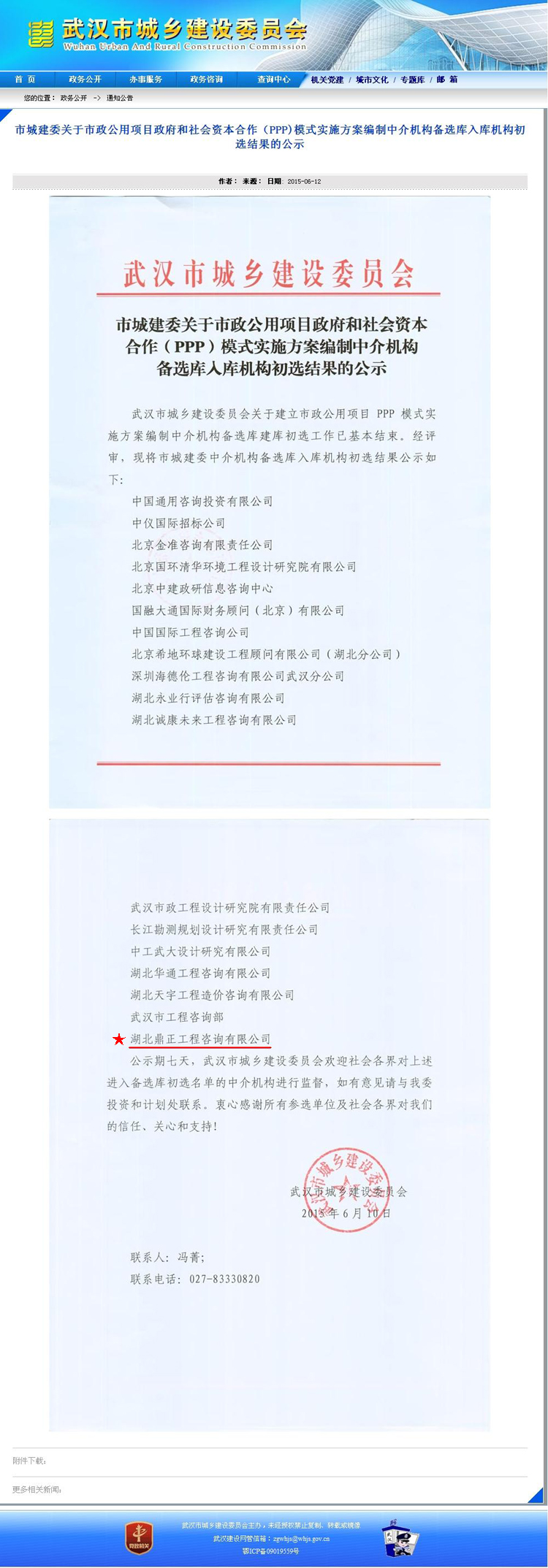 【經(jīng)營成果】我司入圍市城建委關(guān)于市政公用項(xiàng)目政府和社會資本合作(PPP)模式實(shí)施方案編制中介機(jī)構(gòu)備選庫