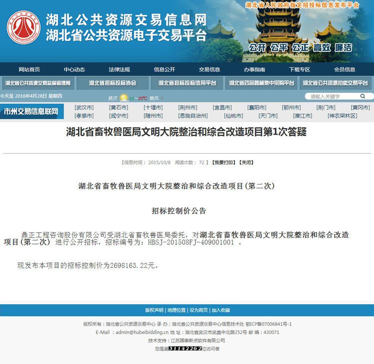 湖北省畜牧獸醫(yī)局文明大院整治和綜合改造項(xiàng)目第1次答疑