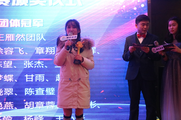 ▲副總毛迎霞為團(tuán)體冠軍頒獎,胡章蓉代表發(fā)言