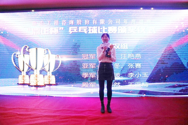 隨后,頒獎典禮正式開始。首先進(jìn)行的是鼎正咨詢歷屆傳統(tǒng)環(huán)節(jié)第七屆“鼎正杯”乒乓球比賽頒獎儀式。鼎正運(yùn)動健兒們在本屆乒乓球比賽中盡情揮灑著激情與汗水,充分展現(xiàn)了鼎正人團(tuán)結(jié)向上、自強(qiáng)不息的精神風(fēng)貌。