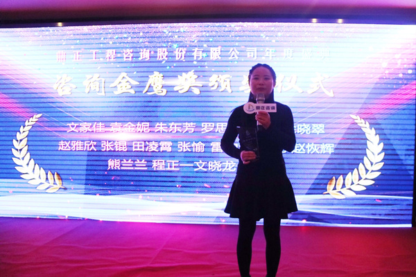 ▲技術(shù)總監(jiān)朱立冬、副總姚建功頒發(fā)咨詢金鷹獎,徐曉翠代表發(fā)言