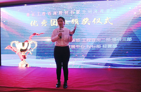 ▲董事長王雁然頒發(fā)優(yōu)秀團(tuán)隊獎,張賽代表發(fā)言