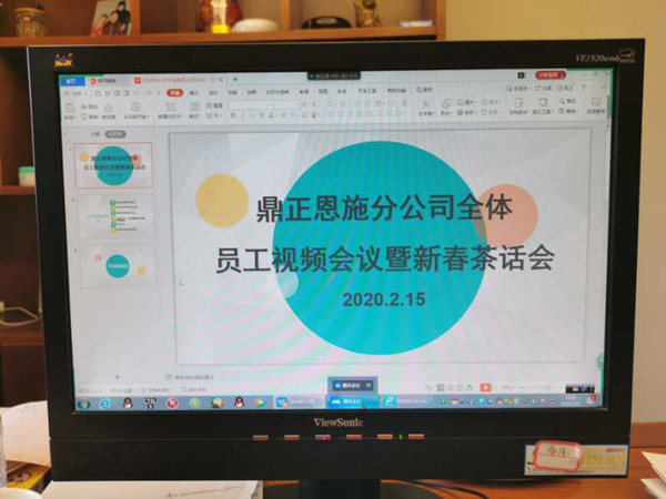 2020年2月15日下午三點,受疫情的影響,鼎正恩施分公司通過視頻會議的形式,召開了全體員工視頻會議暨新春茶話會,即使大家沒有以面對面的方式參與這次會議,但是也能夠通過網(wǎng)絡(luò)與大家零距離地分享自己在這個特殊春節(jié)的所見所聞與個人經(jīng)歷。