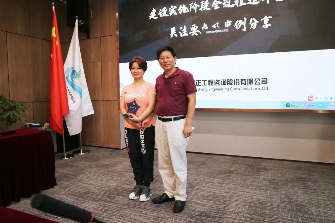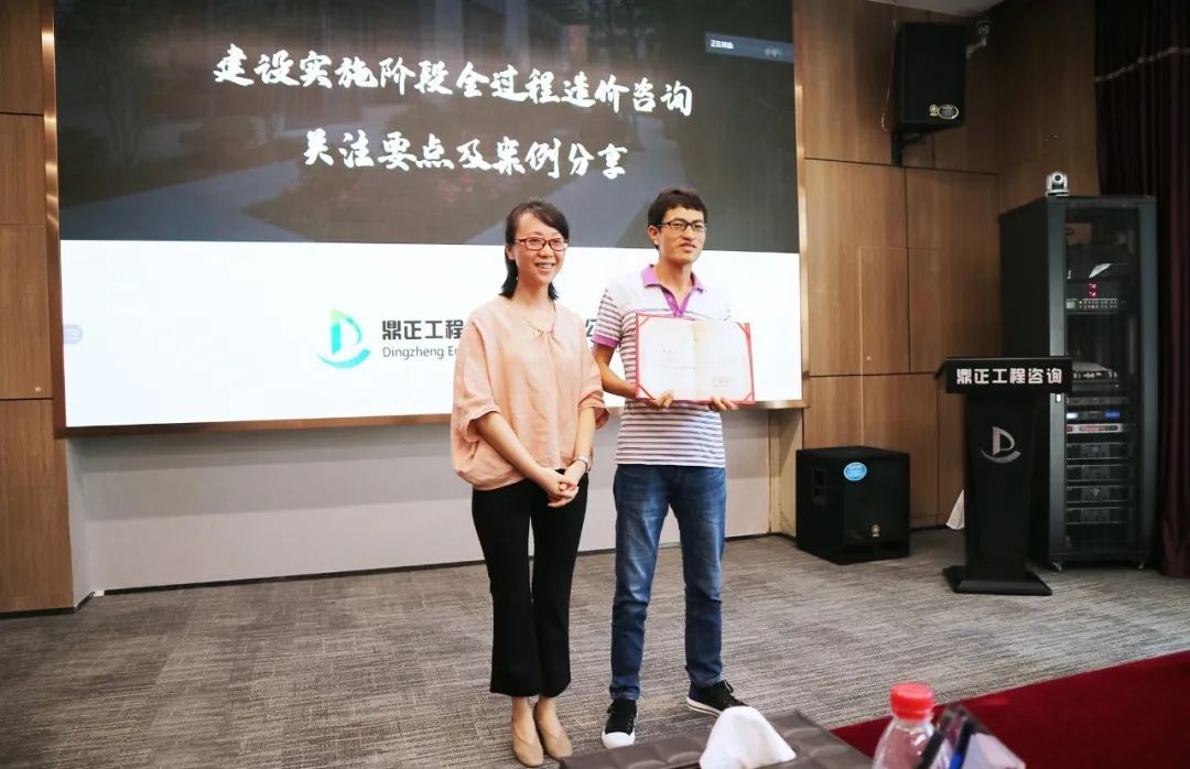 在交流會(huì)尾聲,鼎正技術(shù)總監(jiān)朱立冬、副總經(jīng)理毛迎霞為鼎正荊州分公司技術(shù)負(fù)責(zé)人李素娟、項(xiàng)目經(jīng)理沈雯頒發(fā)榮譽(yù)。