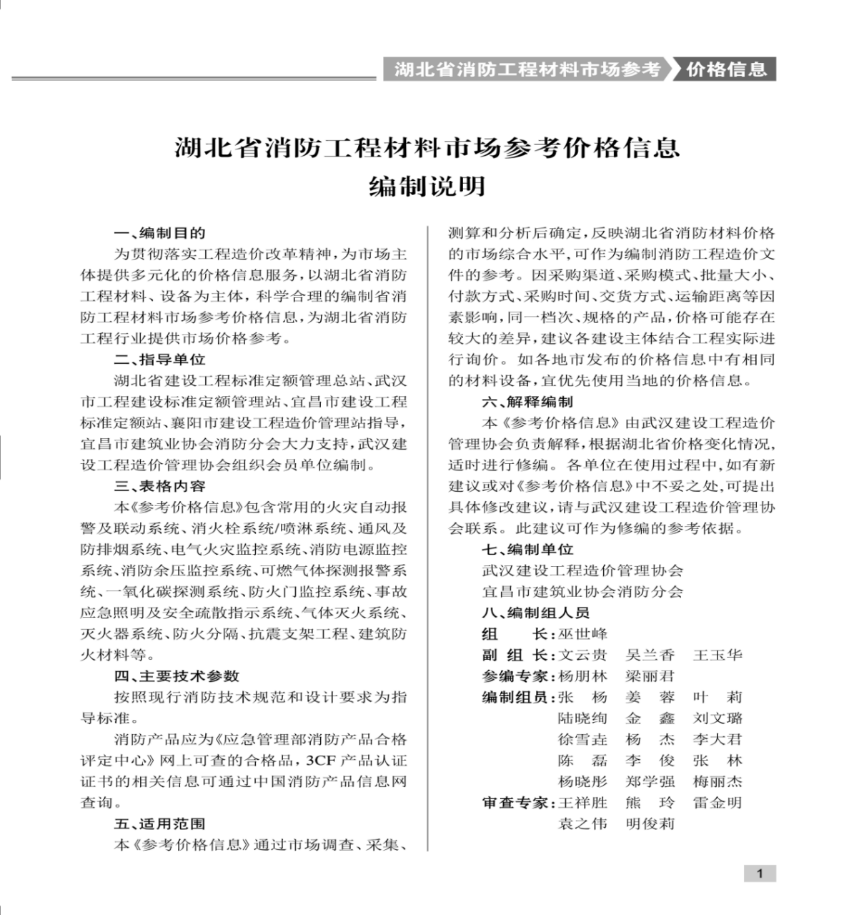 武漢建設工程造價管理協(xié)會、宜昌市建筑業(yè)協(xié)會消防分會聯合組建了編委會,通過市場調查、數據分析、整理歸類、專家審查等環(huán)節(jié),保證了價格信息的科學性、合理性、準確性、完整性。